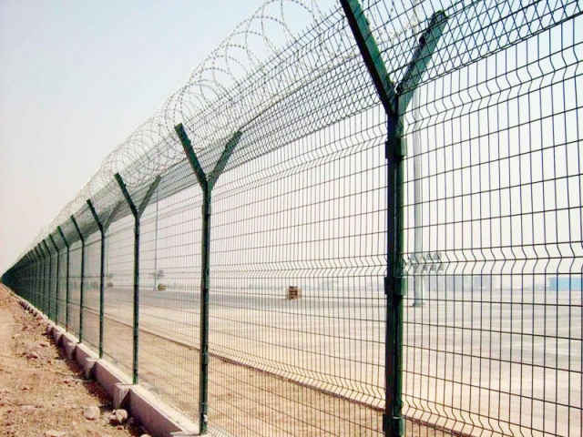 機(jī)場(chǎng)圍界就是應(yīng)用于機(jī)場(chǎng)跑道兩側(cè)的隔離網(wǎng),作用是防止行人誤入跑道,影響飛機(jī)正常運(yùn)行的有效措施。這個(gè)機(jī)場(chǎng)圍界也分為機(jī)場(chǎng)內(nèi)隔離與機(jī)場(chǎng)外隔離,機(jī)場(chǎng)內(nèi)隔離的要求更高,頂部設(shè)置刀刺網(wǎng),外隔離就比較簡(jiǎn)單一些,主要還是防止閑雜或者違法人員進(jìn)入飛行禁區(qū),盡管這雙重保護(hù)之下,還是會(huì)有人進(jìn)行每天巡邏,以防止個(gè)別情況發(fā)生。機(jī)場(chǎng)圍界廣泛應(yīng)用于各大飛機(jī)場(chǎng)的邊界,用作邊界圍欄防護(hù)網(wǎng),還可以用于港口圍界防護(hù)、碼頭鋼絲防護(hù)網(wǎng)、飛機(jī)場(chǎng)防護(hù)護(hù)欄網(wǎng)、Y型安全防御護(hù)網(wǎng),也可以用于公園、動(dòng)物園、賓館酒店、市政道路等領(lǐng)地周邊的安全防護(hù)圍網(wǎng)。